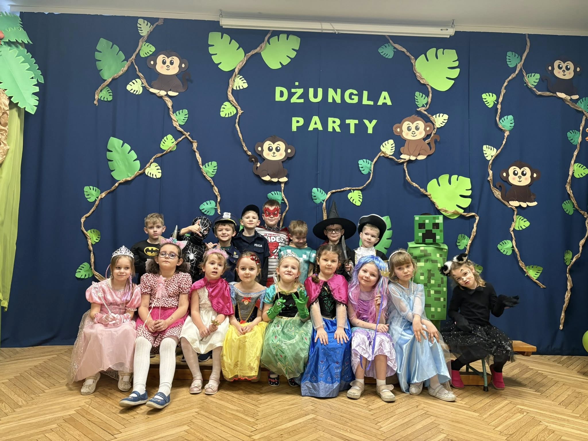 W naszym przedszkolu odbył się wyjątkowy Bal Karnawałowy w klimacie dżungli. Sala zamieniła się w egzotyczną krainę pełną zieleni, zwierząt i tajemniczych zakątków. Dzieci przebrane za lwy, tygrysy, papugi i inni mieszkańcy dżungli bawiły się przy wesołej muzyce, uczestniczyły w zabawach i konkursach oraz wspólnie tańczyły. To był dzień pełen radości, śmiechu i niezapomnianych wrażeń.