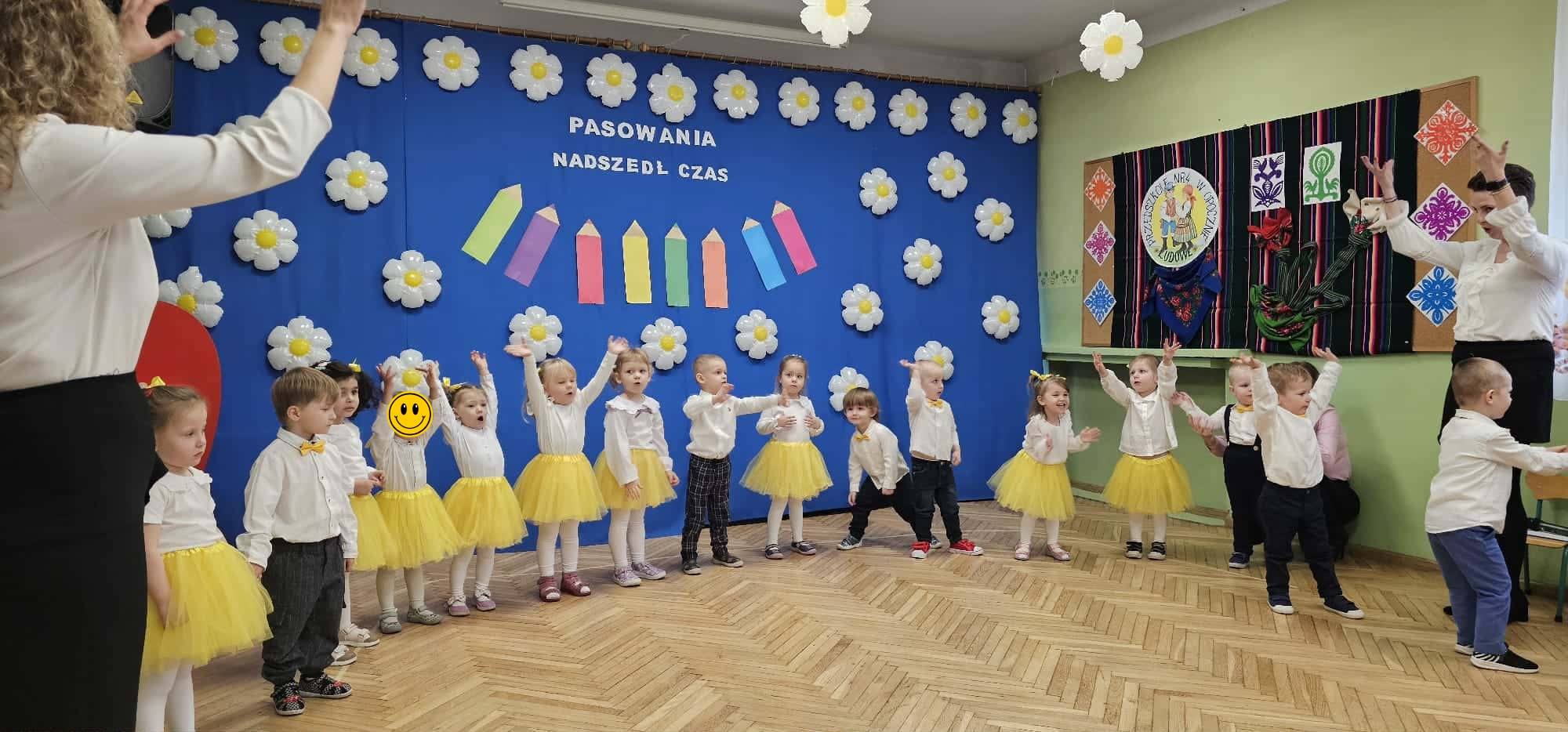 Podczas uroczystości mali artyści z dumą zaprezentowali piosenki i wierszyki, pokazując, jak wiele już potrafią Następnie nastąpił najważniejszy moment – uroczyste pasowanie, które na długo pozostanie w pamięci dzieci, nauczycieli i rodziców ️