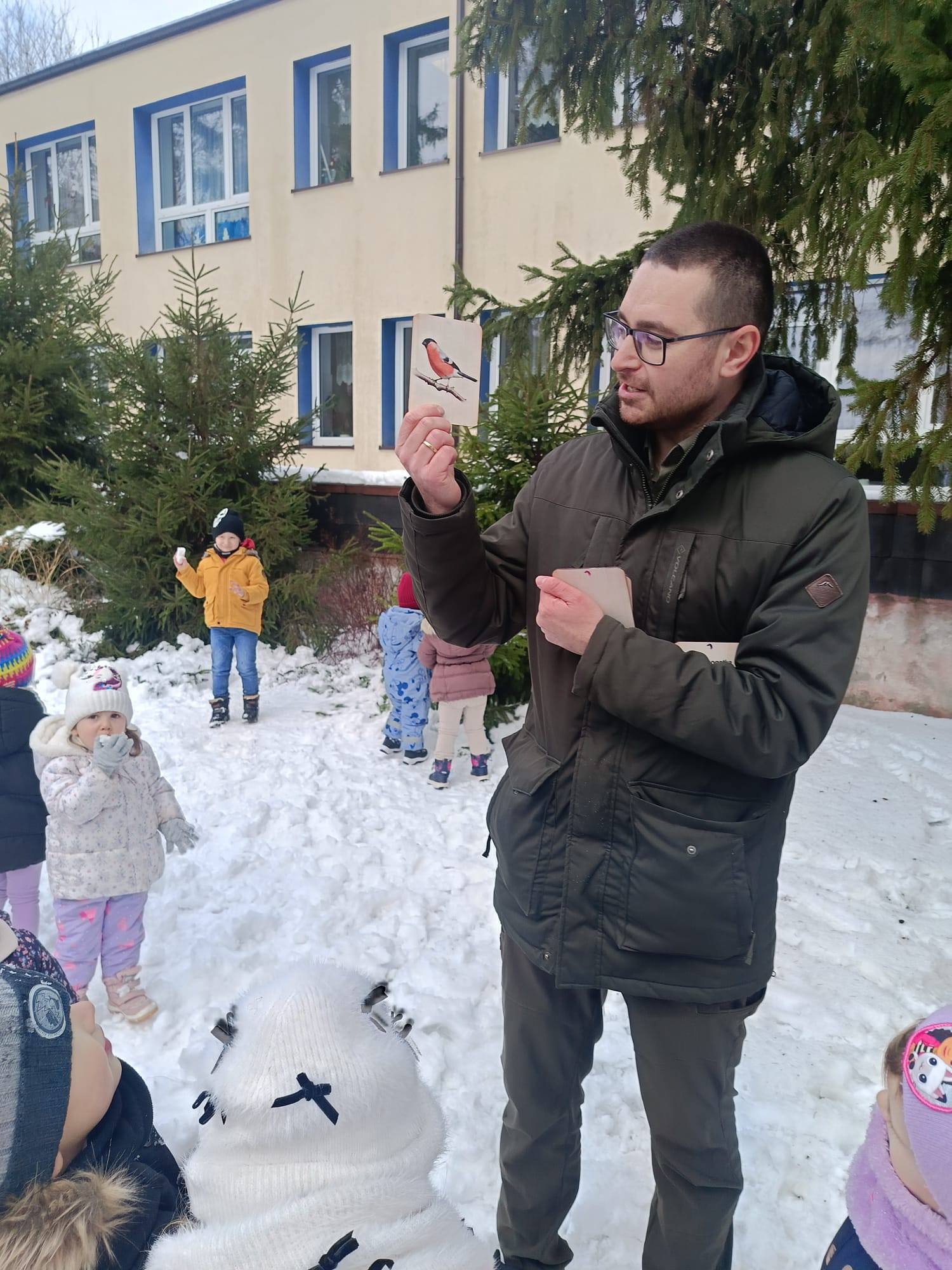Na naszym przedszkolnym podwórku odbyło się wyjątkowe spotkanie z panem leśniczym, który w ciekawy i przystępny sposób przybliżył dzieciom tajniki swojej pracy