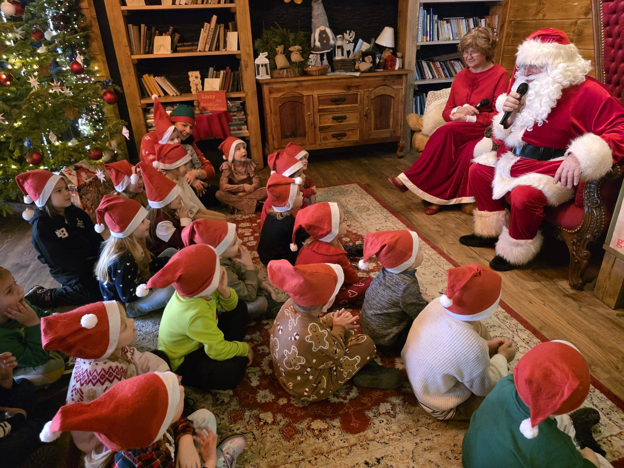 Dzieci z grupy Bratki wybrały się na wyjątkową wycieczkę do Wioski Świętego Mikołaja. Już od samego początku towarzyszyło im wiele radości i ekscytacji. Przedszkolaki miały okazję spotkać Świętego Mikołaja, wziąć udział w świątecznych zabawach oraz poznać magiczny klimat przygotowań do Świąt Bożego Narodzenia. Nie zabrakło wspólnych atrakcji, uśmiechów i niezapomnianych wrażeń. Wycieczka dostarczyła dzieciom wielu pozytywnych emocji i na długo pozostanie w ich pamięci
